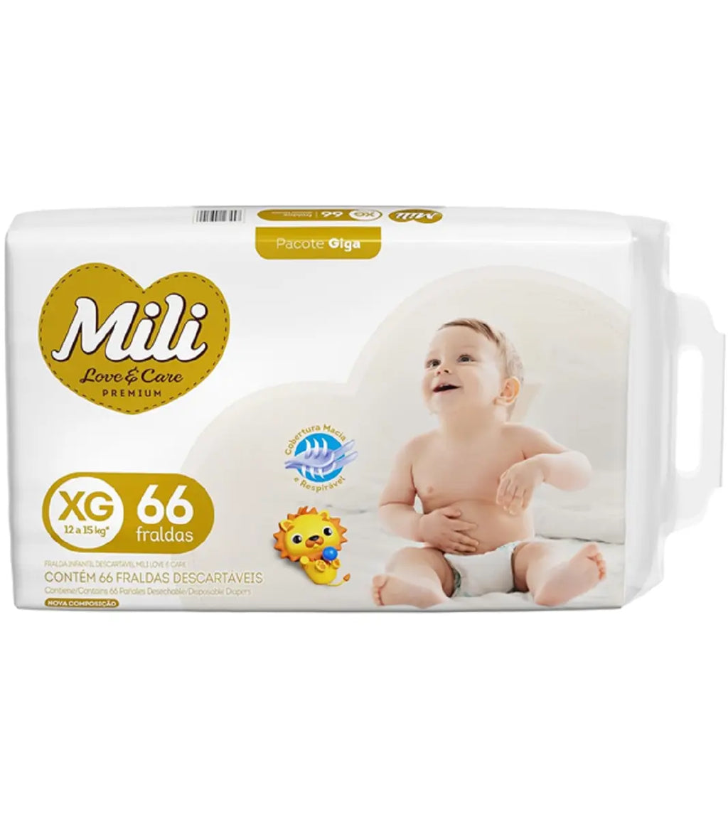FRALDA MILI LOVECARE GIGA TAM(XG) 66 UN